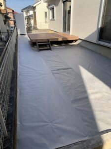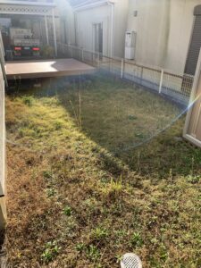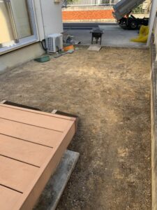 既存の雑草をしっかり撤去し、人工芝下地を整地。