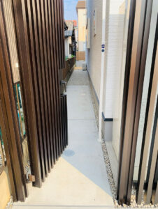 また、通路部分は動線をしっかり確保しつつ、コンクリートと砂利を組み合わせることで、見た目とメンテナンス性のバランスを取っています。